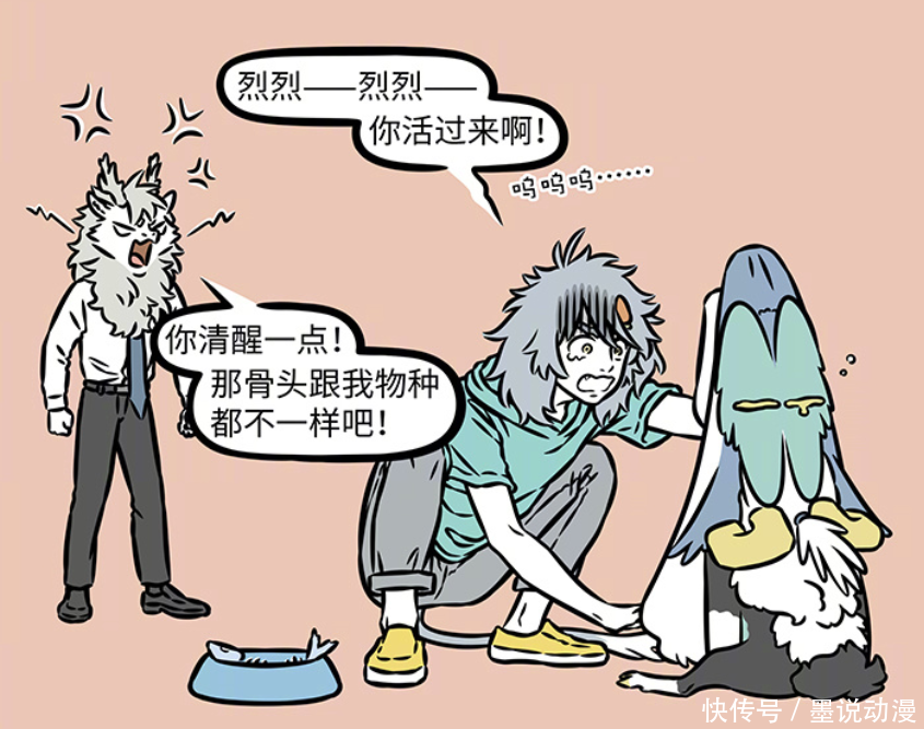 《非人哉》第1126话更新,许久未见的饕餮再度出现。哪吒原本想将饕餮带去公司养一段时间。没想到哪吒却被吞下去,不过还好能够自己逃出来。公司养饕餮之后,看到兔头和鱼骨,误以为小玉和敖烈被饕餮吃掉。